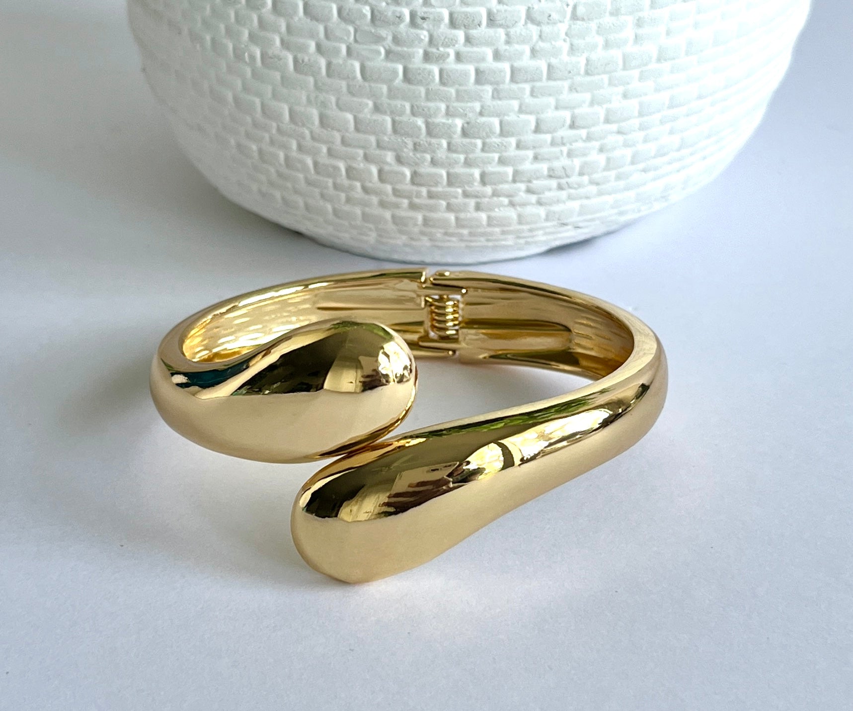 with a smooth, flow curve and a mirror like finish, this statement bangle blends modern edge.