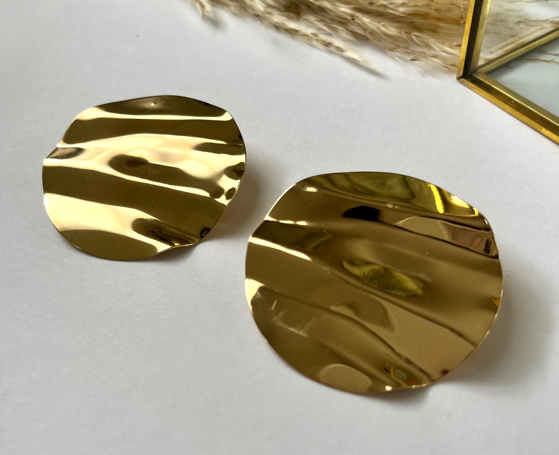 Halo circular earrings are designed with their sleek, polished gold finish and simple round shape featuring beautifully detailed folds.
